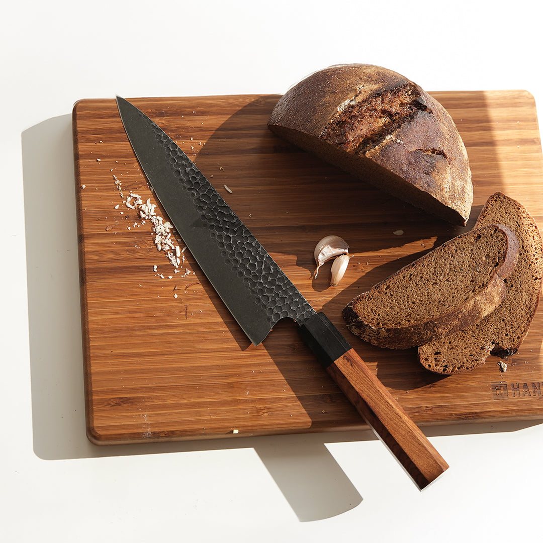 DOVANA! Kaltinis šefo peilis "Harumi" – Įkvėptas meistriškų Samurajų kardų kaldinimo tradicijų, vertinamas tiek profesionalių šefų, tiek virtuvės mėgėjų. Peilis pagamintas iš vieno geriausių pasaulyje premium 440C nerūdijančio plieno, kurio kietumas siekia HRC 58–60. Keletą kartų apdirbamas plienas įgauna išskirtines kietumo savybes yra lengvai galandamas ir dėka sudėtyje esančios anglies yra itin atsparus korozijai bei itin ilgai išlieka aštrus.