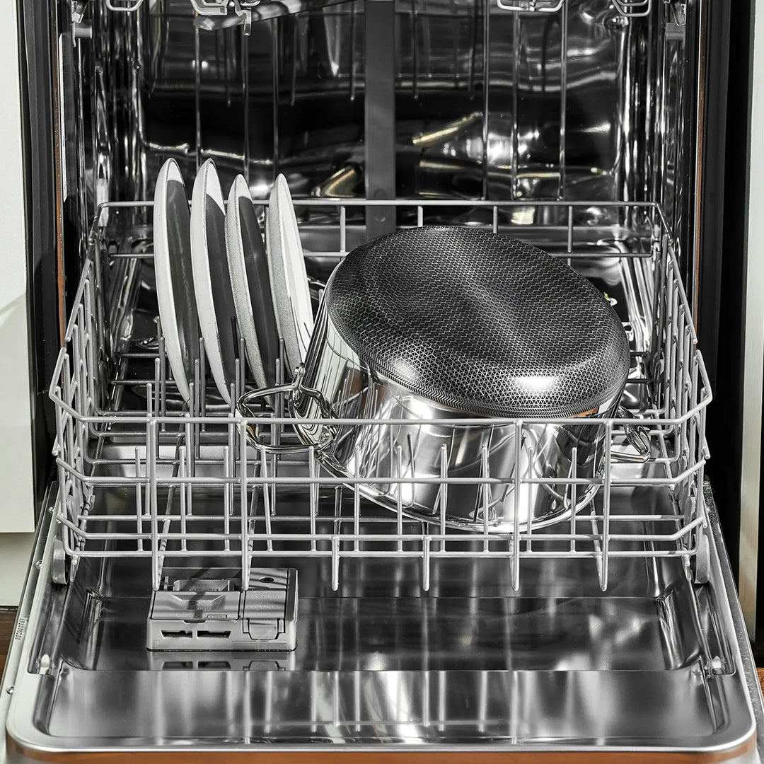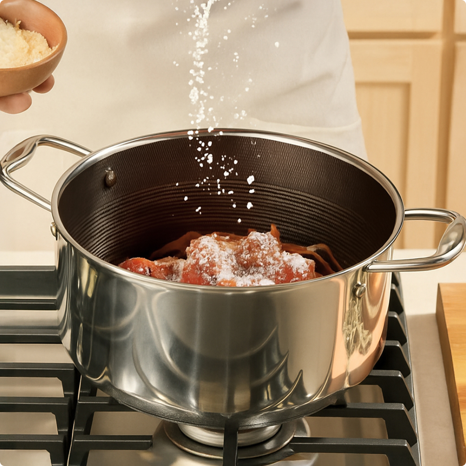 Lyginant su kitais puodais, galima naudoti metalinius įrankius