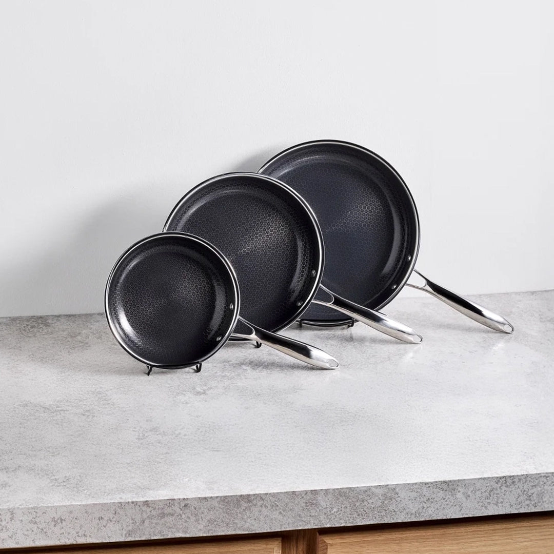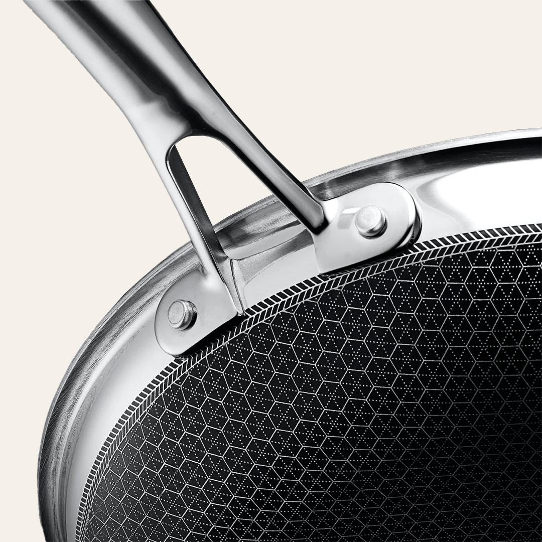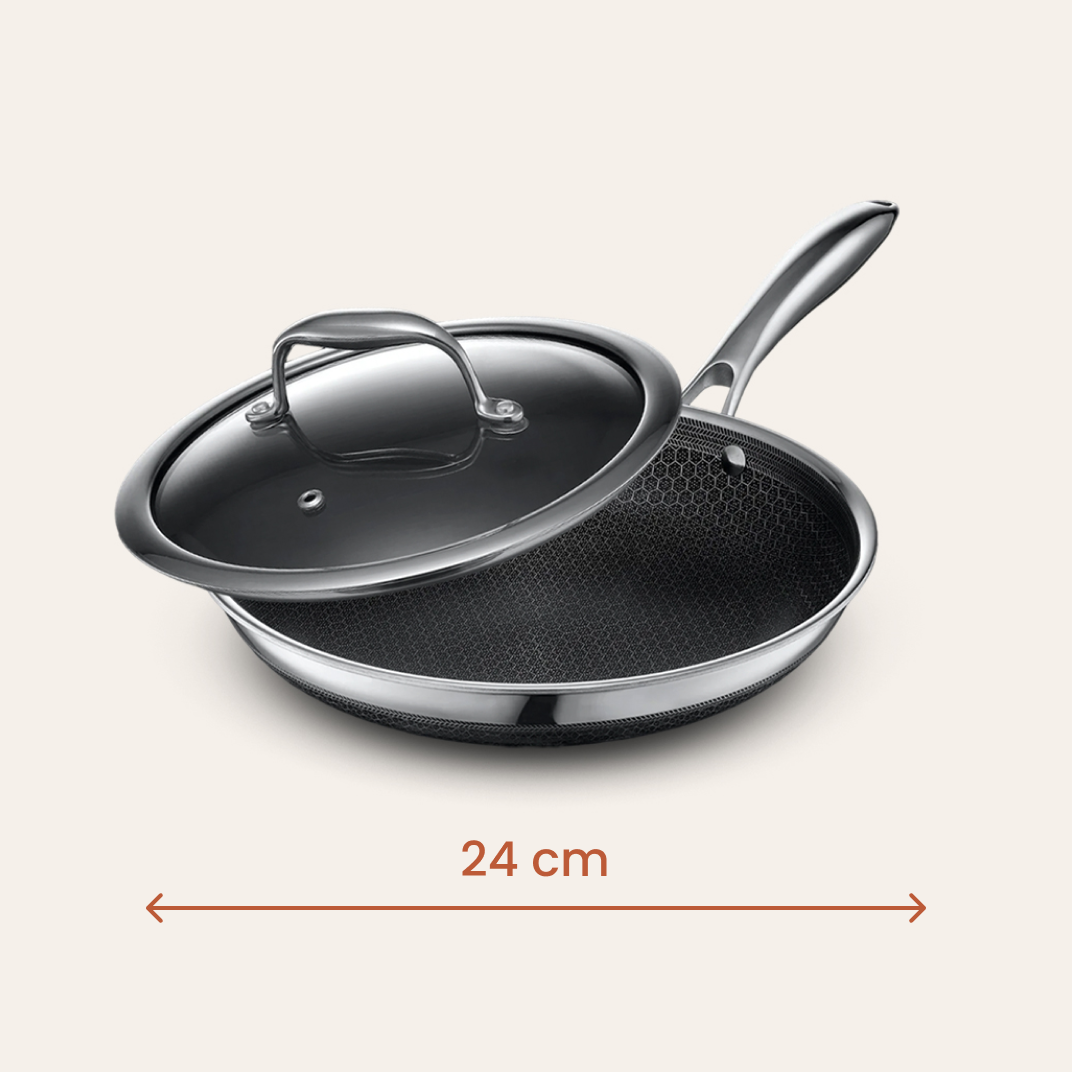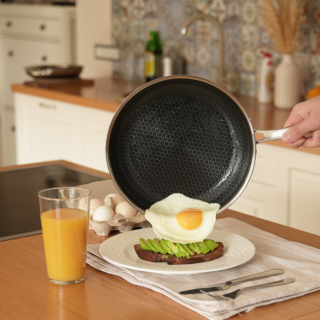 Magnetinio plieno dugnas užtikrina, kad ši keptuvė puikiai veikia su indukcinėmis, dujinėmis, elektrinėmis ir kitomis kaitlentėmis.