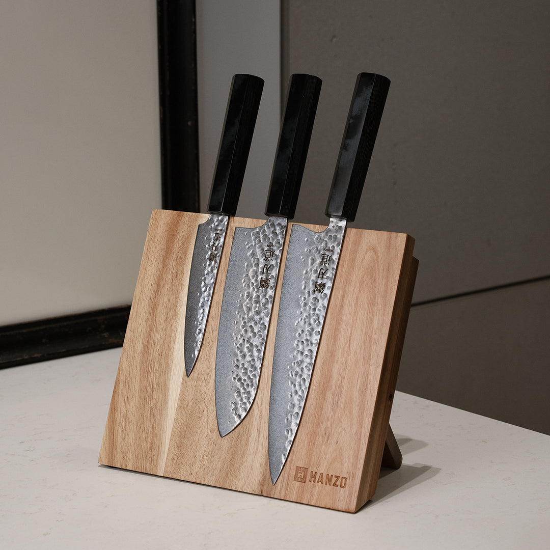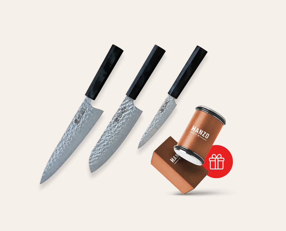 „Puikiai tiks tiek mėgėjui, tiek labiau patyrusiam virtuvės šefui. Vidutinis peilis universalus – naudoju beveik kasdien. šie trys peiliai pakeitė viską mano virtuvėje.“